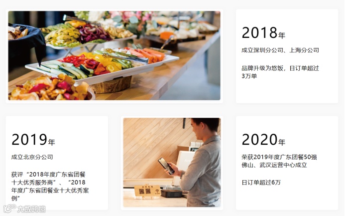 作为新型的平台型团餐服务商,悠饭聚集了大量的优质社会餐饮服务商,改变了团餐的生产方式;通过智能恒温餐柜,改变了写字楼团餐的交付方式,通过全程互联网化,改变了团餐行业消费与供应的信息传递方式。