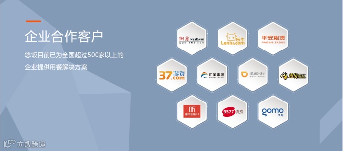 悠饭团餐致力于提升企业员工幸福感,为企业提供在线订餐、商务用餐、团队自助餐、主题餐等企业消费综合服务,业务覆盖广州、深圳、北京、上海等一线城市,至今服务企业客户超 500 家,合作供应商超过 1000 家。悠饭为网易、中国平安、滴滴、贪玩游戏、广州华融小学、四航设计院等大型知名企业及事业单位推广普及。2017 年通过评审获得国家高新技术企业称号、2018 年荣获“广东省团餐十大优秀服务商”、“广东省团餐业十大优秀案例”荣誉称号、2019 年荣获“广东团餐 50 强”荣誉称号。
