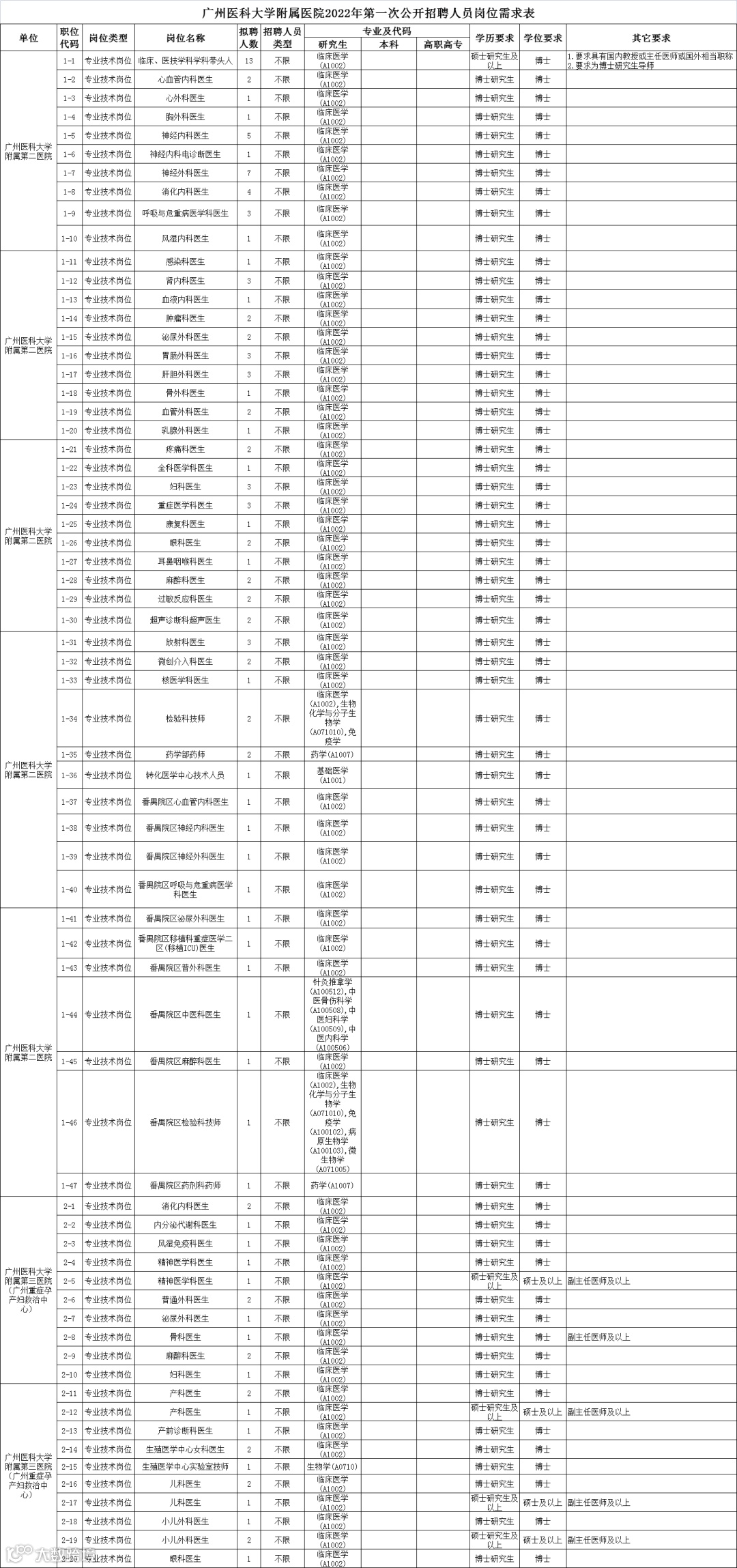 公告详情:查看公告→广州医科大学附属医院2022年第一次公开招聘工作人员公告