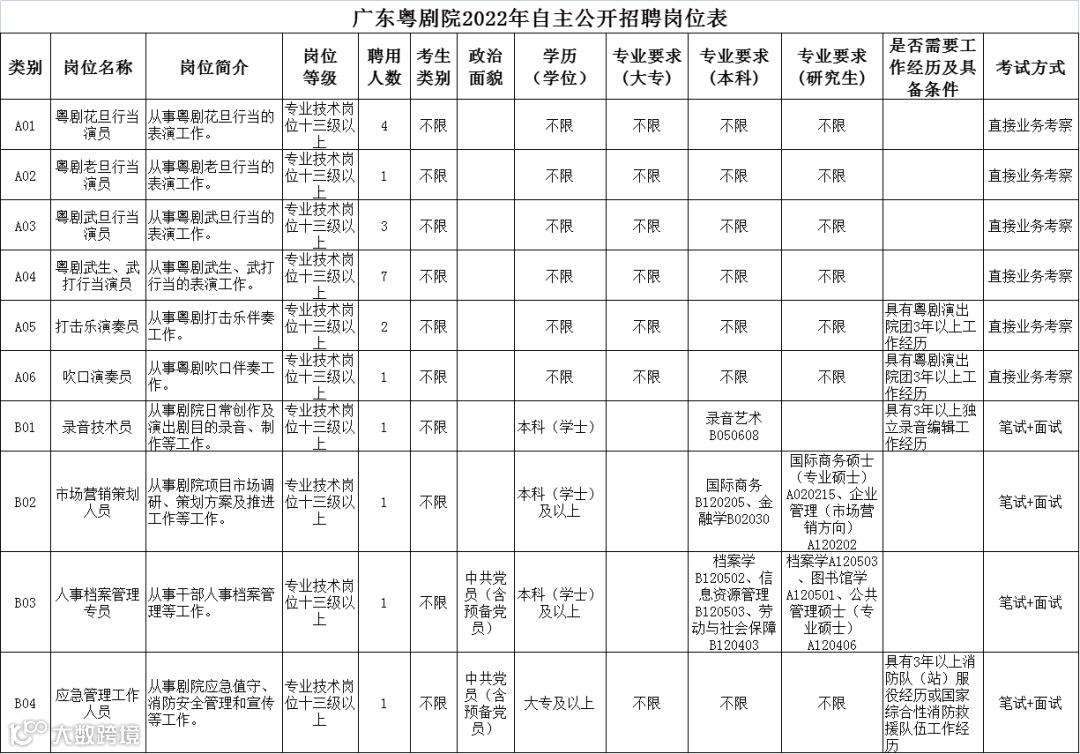 公告详情:查看公告→广东粤剧院2022年公开招聘公告