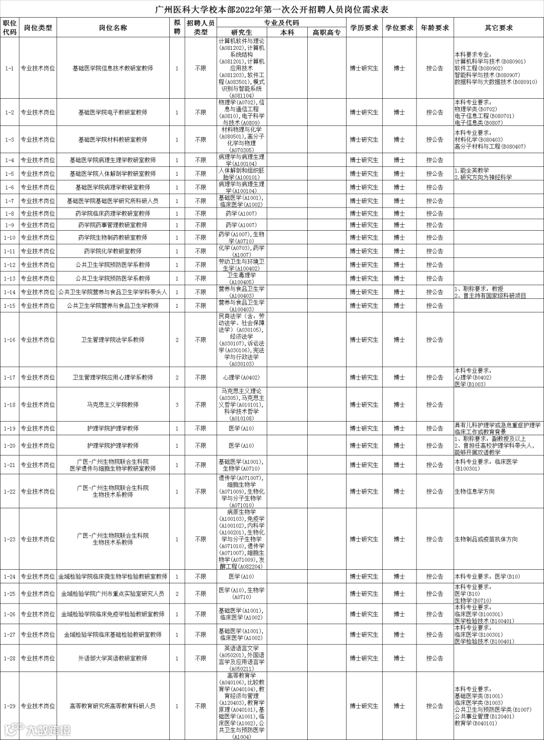 公告详情:查看公告→广州医科大学校本部2022年第一次公开招聘工作人员公告