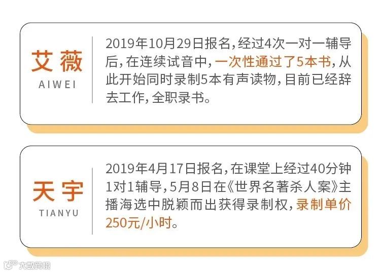现在市场上大部分的有声书主播都是非科班出身,比如喜马拉雅月入百万的头部有声书主播就是计算机专业出身,创作过《古剑奇谭》、《大鱼海棠》的配音大佬张杰是旅游英语专业出身,他们的成长轨迹无非是: