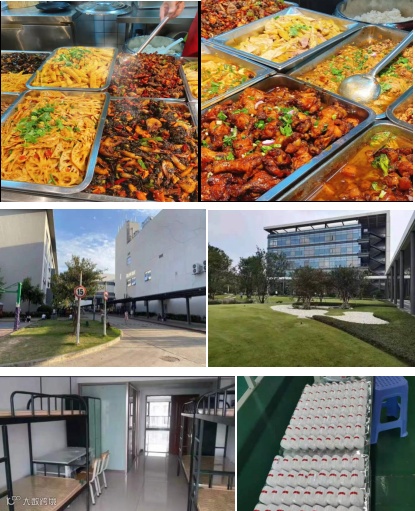 a、包吃包住,公寓宿舍4-6人间,空调,热水器,独立卫生间,衣柜,书桌,wifi等;
