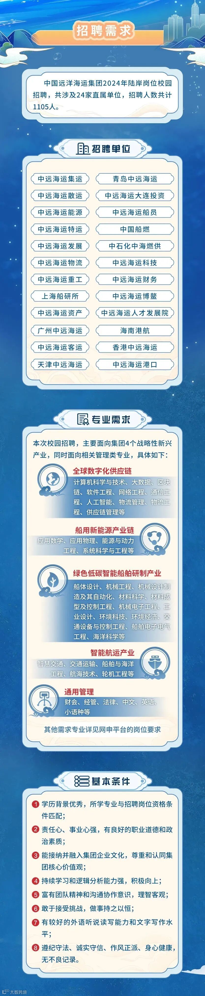 【广州招聘】国企24家直属单位共招1105人!中国远洋海运集团招聘正在进行中!六险二金+多元福利!