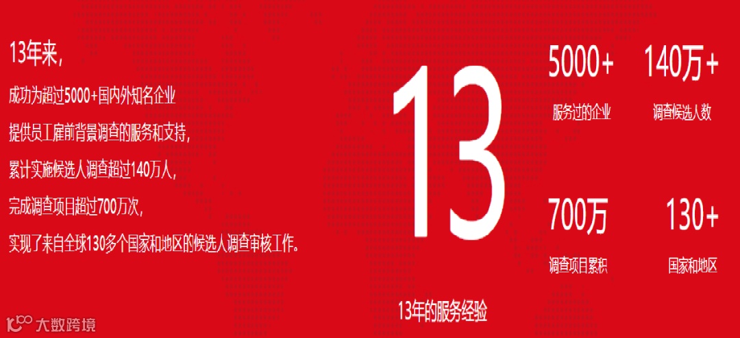 八方锦程成立于2008年,至今已有13年历程,是中国最早成立与最为领先的员工雇前背景调查公司。
