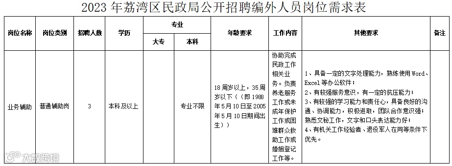 1.2023年荔湾区民政局公开招聘编外人员岗位需求表