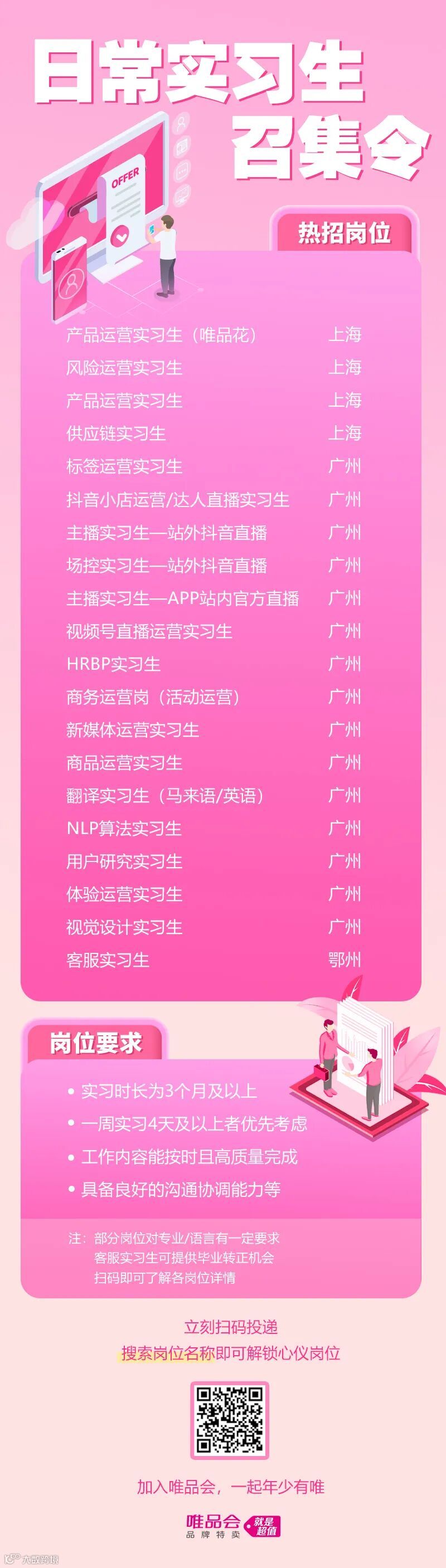 【广州招聘】唯品会 | 看过来,广州超多热招岗位,好机会别错过~日常实习岗位全在这了!