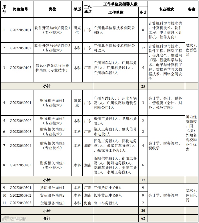 中国铁路广州局集团有限公司根据经营发展需要,拟公开招聘普通高等院校本科及以上学历毕业生,现将有关事项公告如下: