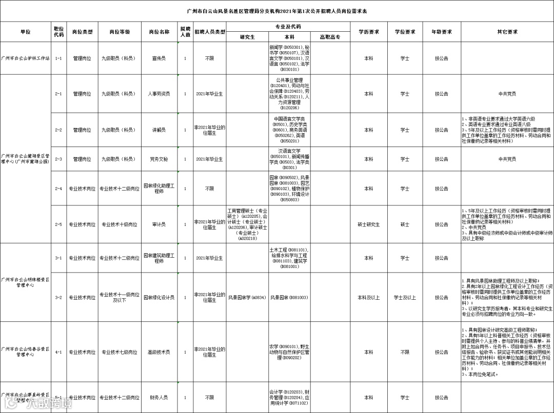 【公告详情】点击蓝字查看公告→广州市白云山风景名胜区管理局分支机构2021年第1次公开招聘工作人员公告。