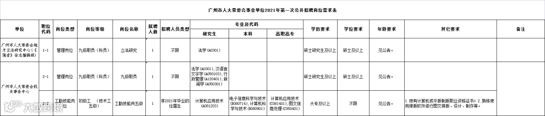 【公告详情】点击蓝字查看公告→广州市人大常委会机关所属事业单位2021年第一次公开招聘工作人员公告。