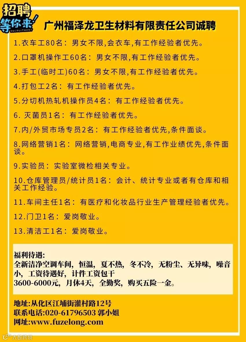 1月29日,广州市从化区向社会发布“寻人”启事,其辖区内3家口罩防护服企业急需衣车工、口罩机操作工、灭菌员等工人,约为240人左右,以助力防控疫情急需物资的生产。