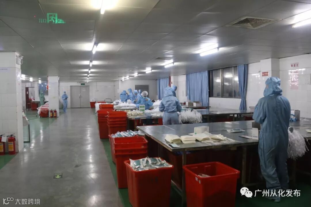 据悉,为了助力疫情防控,广州福泽龙卫生材料有限责任公司等企业在当地政府号召下已于大年初一当天紧急复工,全力生产医用口罩、隔离服、手术衣等疫情防控急需物资。