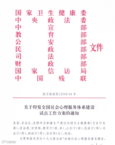 2018年,10部委联合发布《全国社会心理服务体系建设试点工作方案》。