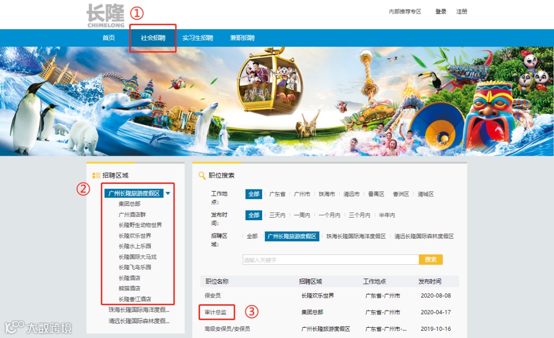 ① 长隆招聘官网在线申请(电脑端)