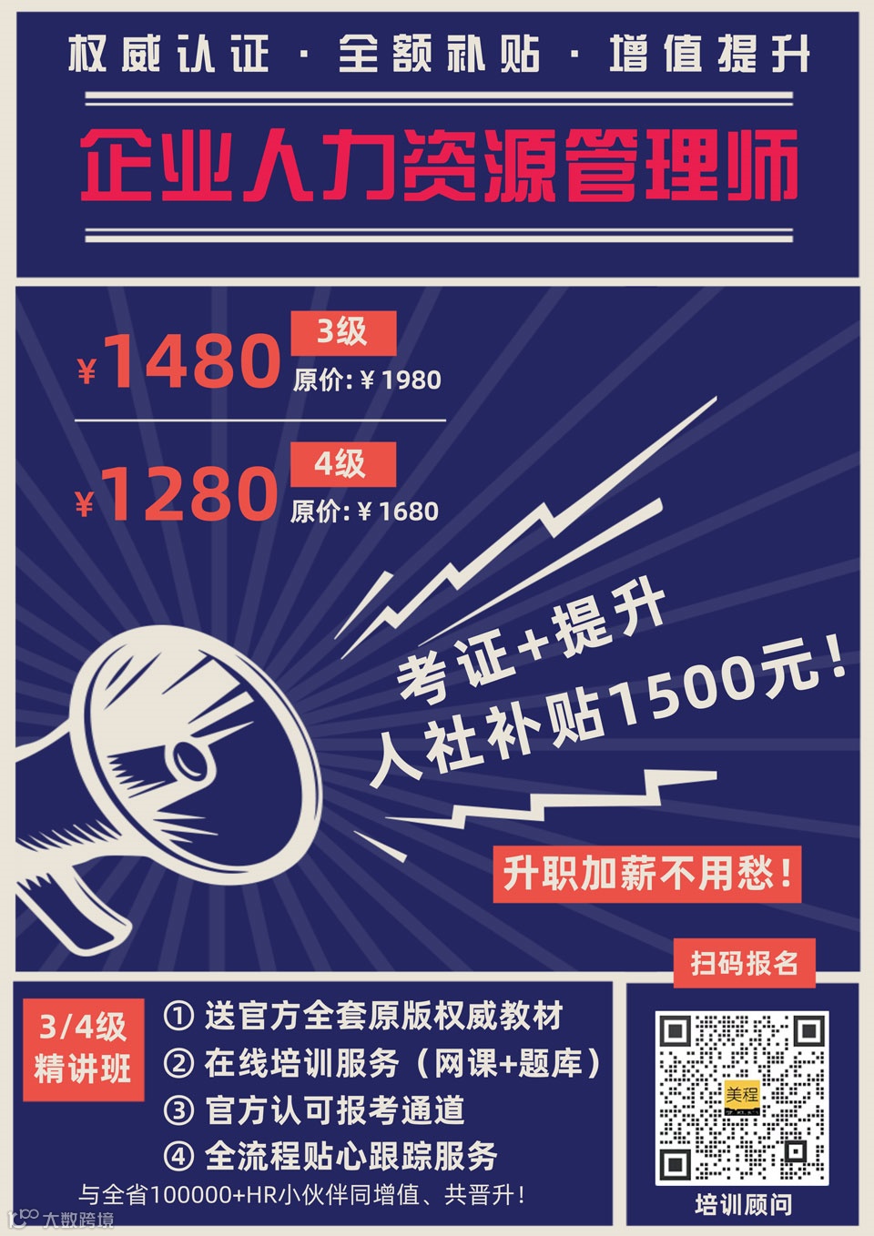 2、通过本渠道报名的企业人力资源管理师(3级/4级)培训,均有全流程服务保障。