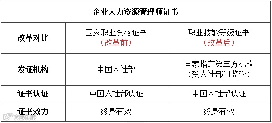 根据国家政策规定,企业人力资源管理师证书由资格评价改为技能等级认定,改革后正式成为职业技能等级证书系列,真正发挥用人主体作用和社会组织作用,为技能人才成长成才提供更加广阔的天地。
