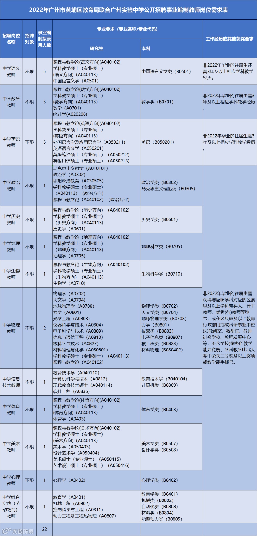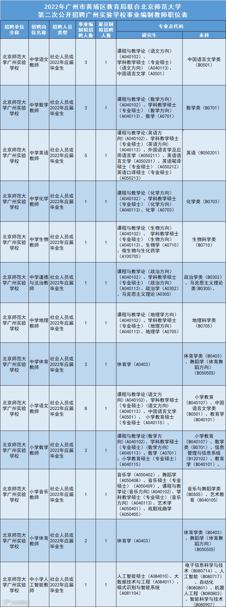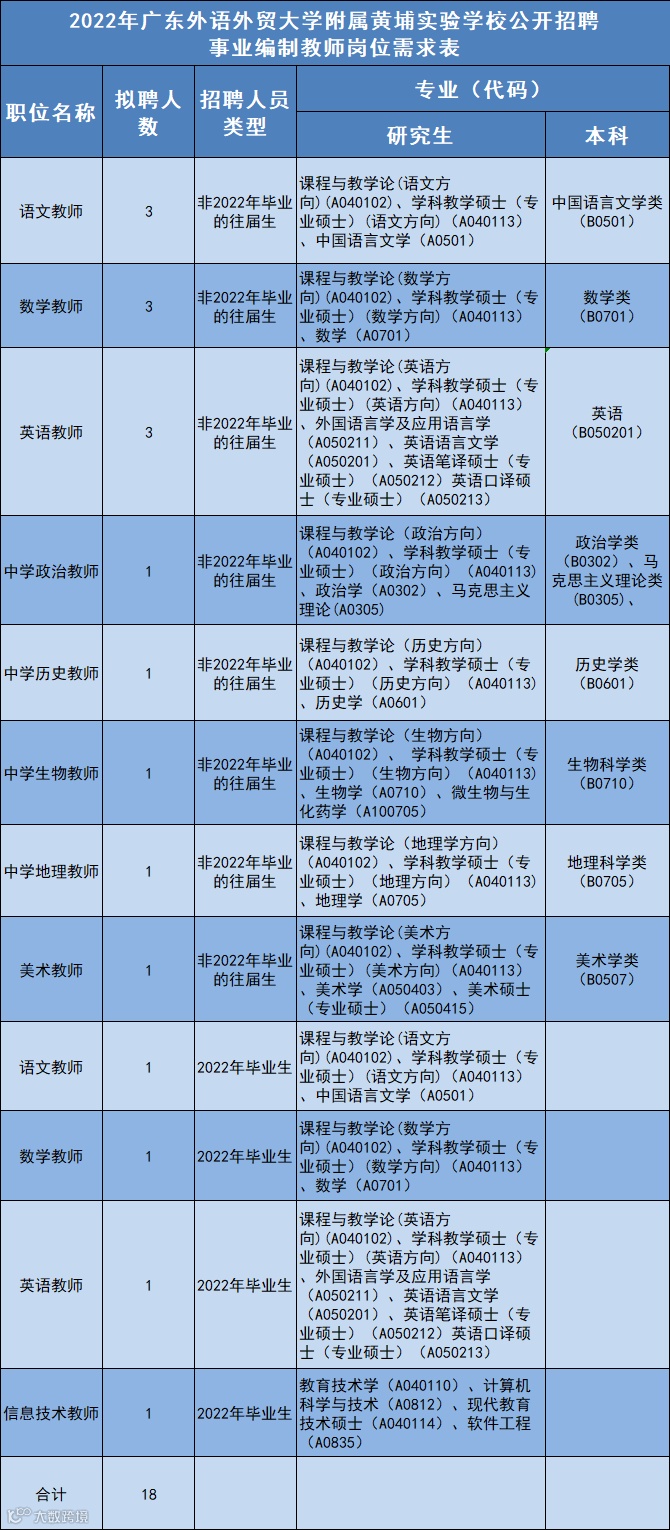 广州实验学校事业编制中学教师18名、