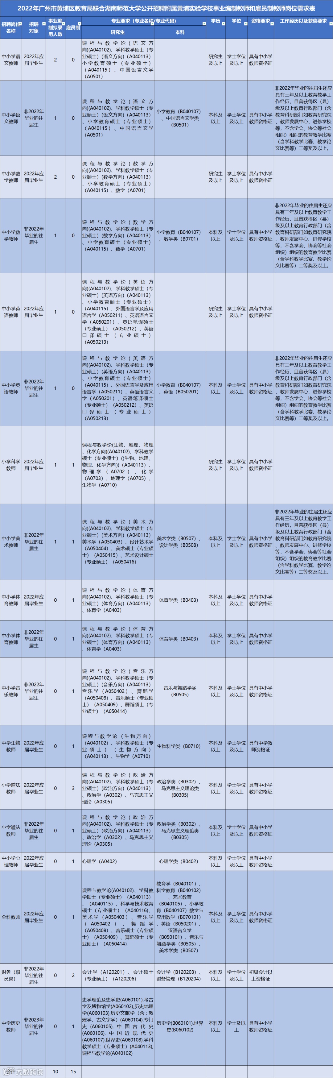 附属黄埔实验学校事业编制教师10名、