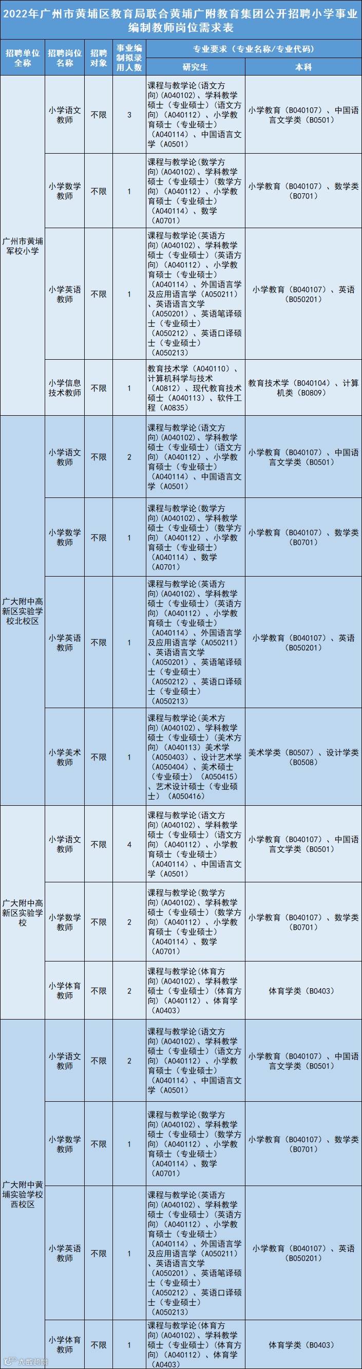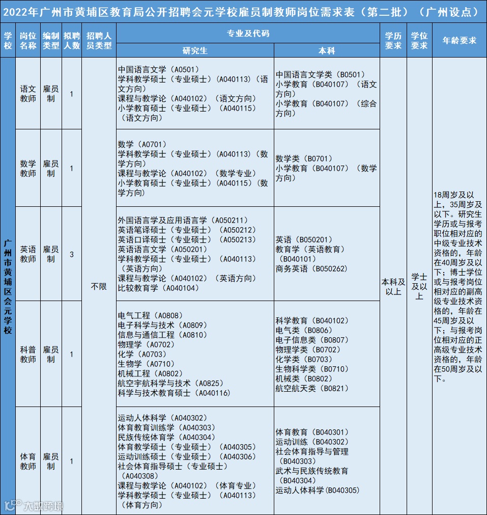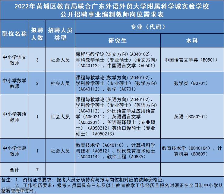 黄埔将招考公办中小学教师