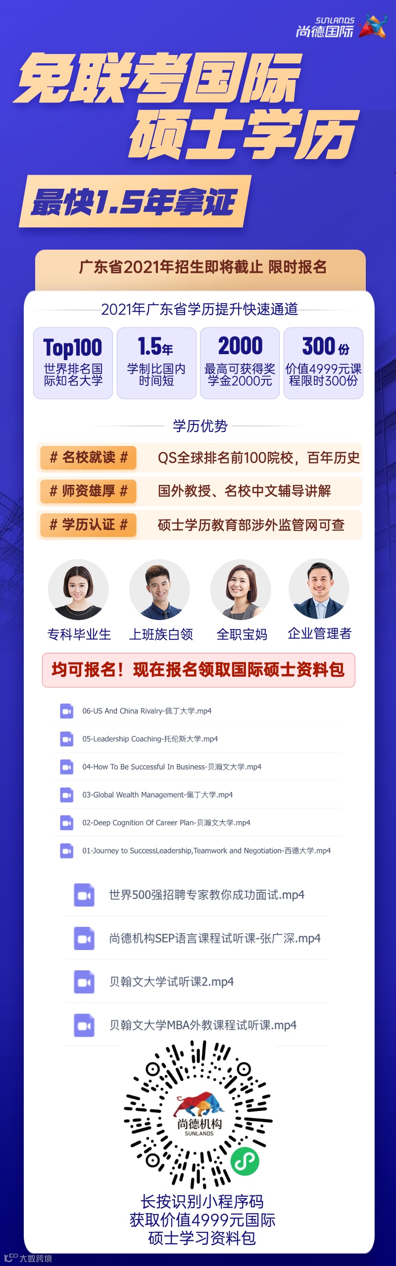 现在,国际免联考硕士2021年秋季招生已经开始!广东地区开放100名直通研究生名额,错过今年延迟一年毕业!