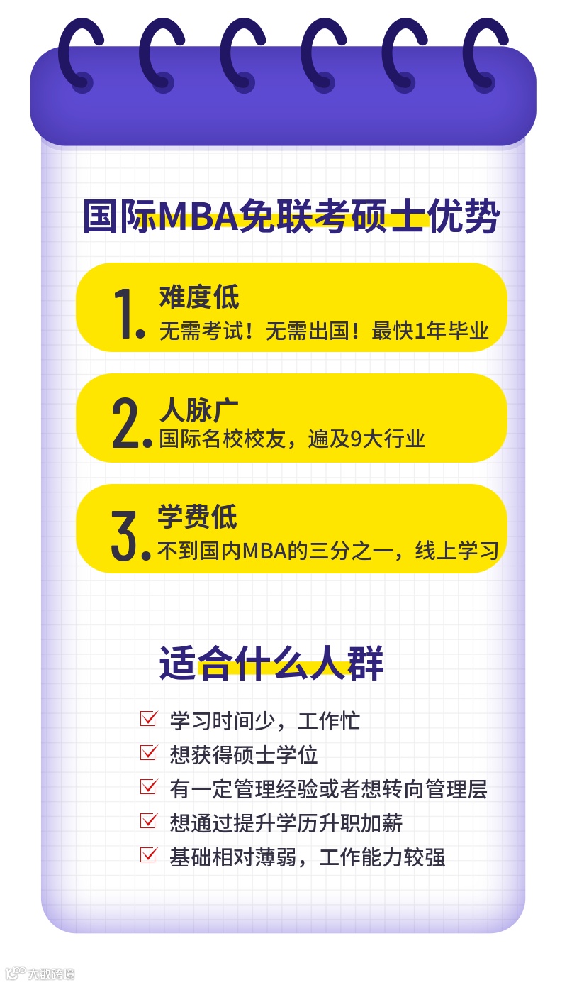 相比起国内硕士,国际研究生学制更短,通常只需要1-2年就能毕业。线上学习的方式让大家足不出户就能拿到和在校生同等的硕士学位。另外,它对学历要求较低,只要满足大专学历也能直接读研!