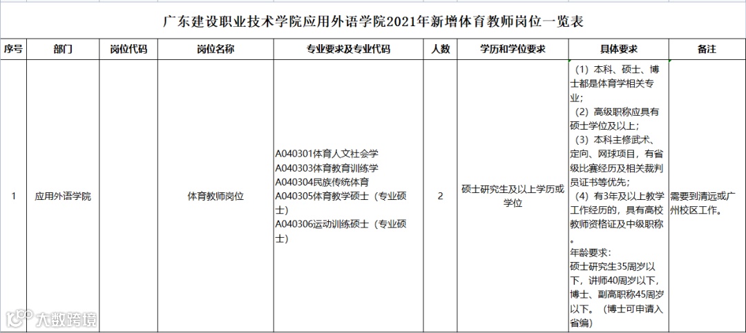 1:广东建设职业技术学院应用外语学院2021年体育教师招聘岗位一览表.xls