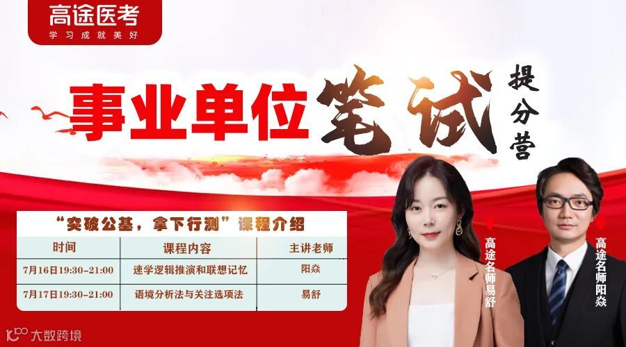 两位老师擅长将枯燥的理论变成有趣的方法和技巧,让你在课堂上深刻掌握切实有用的解题思路!高途医考菁英讲师、5年教学经验,研发常识判断流程思维法,率先将联想记忆法系统引入事业编考试中的阳焱老师 和行测言语院长易舒老师 联合授课,易舒老师授课经验4年+,擅长从学科基础至备考技巧两手出发帮助学生建立真正的答题思路。