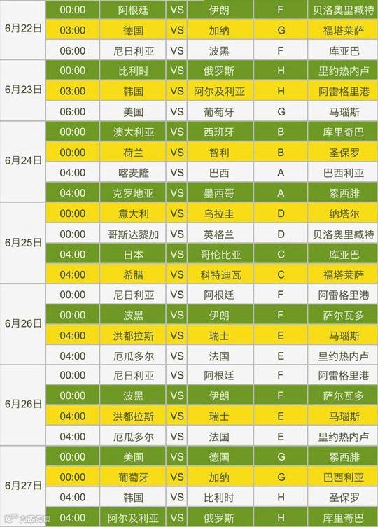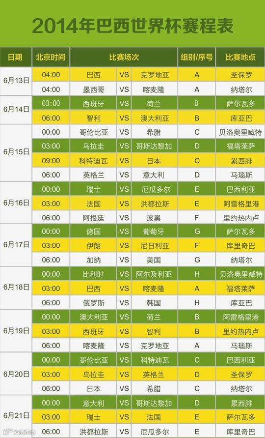 最后,为您附上最实用的世界杯赛程表