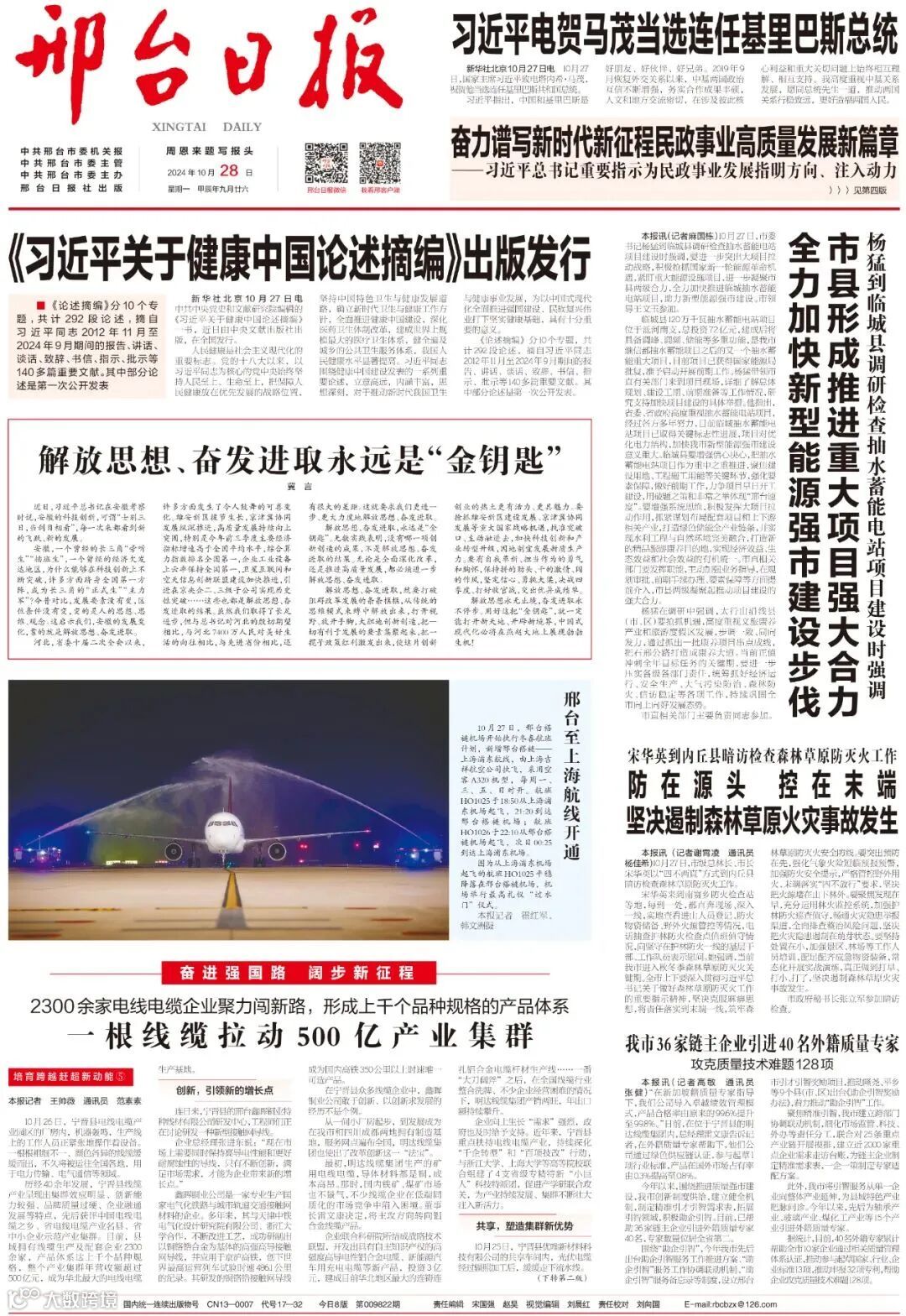 10月26日,宁晋县电线电缆产业园区的厂房内,机器轰鸣,生产线上的工作人员正紧张地操作着设备。一根根粗细不一、颜色各异的线缆缓缓而出,不久将被运往全国各地,用于电力传输、电气通信等领域。