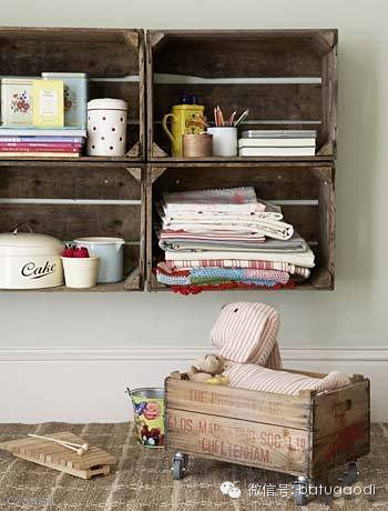 几个木箱整齐的悬挂在墙上,家中顿时充满自然的气息。还可以选择与家中墙壁颜色相近的好看布料对木箱内部进行装饰,这样的装饰可以增加多样性和温馨感。