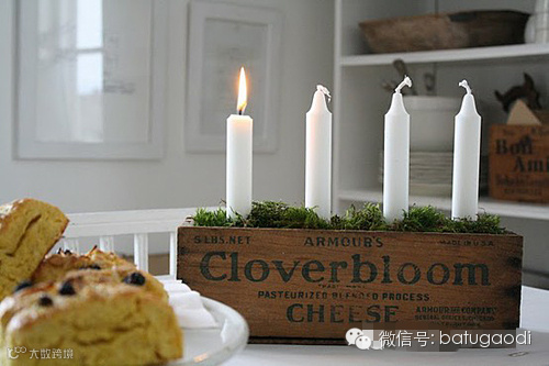 6、如果你有单瓶大小的木制红酒盒,可以将它改造成餐桌上的烛台,还可以在上面绘一些图案,摇曳的烛光,温暖的就餐画面浮现在眼前。