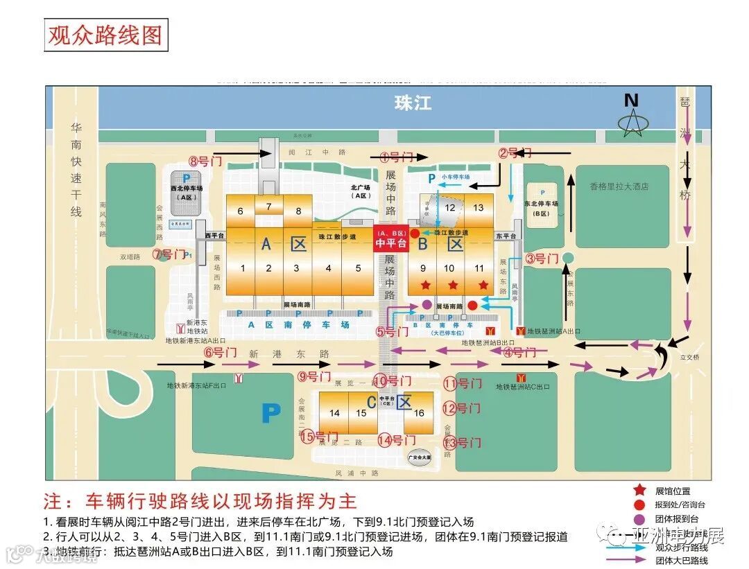 地铁:在机场乘坐地铁3号线至客村站转乘8号线,然后在琶洲站A/B出口出;琶洲展馆B区一楼