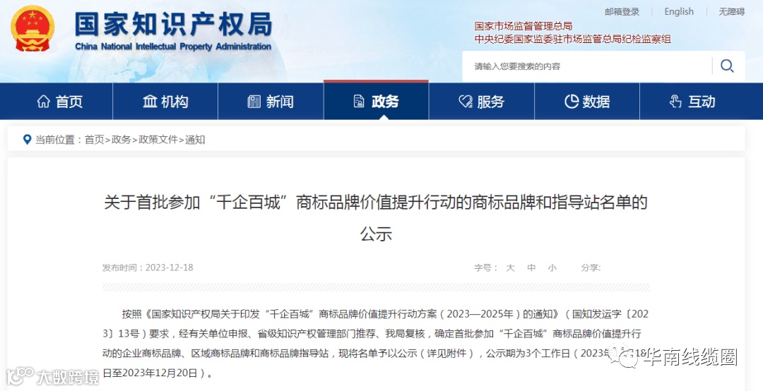 12月18日,国家知识产权局正式公示关于首批参加“千企百城”商标品牌价值提升行动的商标品牌和指导站名单。根据国家知识产权局此前印发的《“千企百城”商标品牌价值提升行动方案(2023—2025年)》(下称“行动方案”),将通过企业商标品牌价值提升专项行动、商标品牌优势区域创建专项行动、商标品牌建设服务指导专项行动“三大行动”有效促进企业和区域商标品牌价值提升,加快推动中国产品向中国品牌转变。