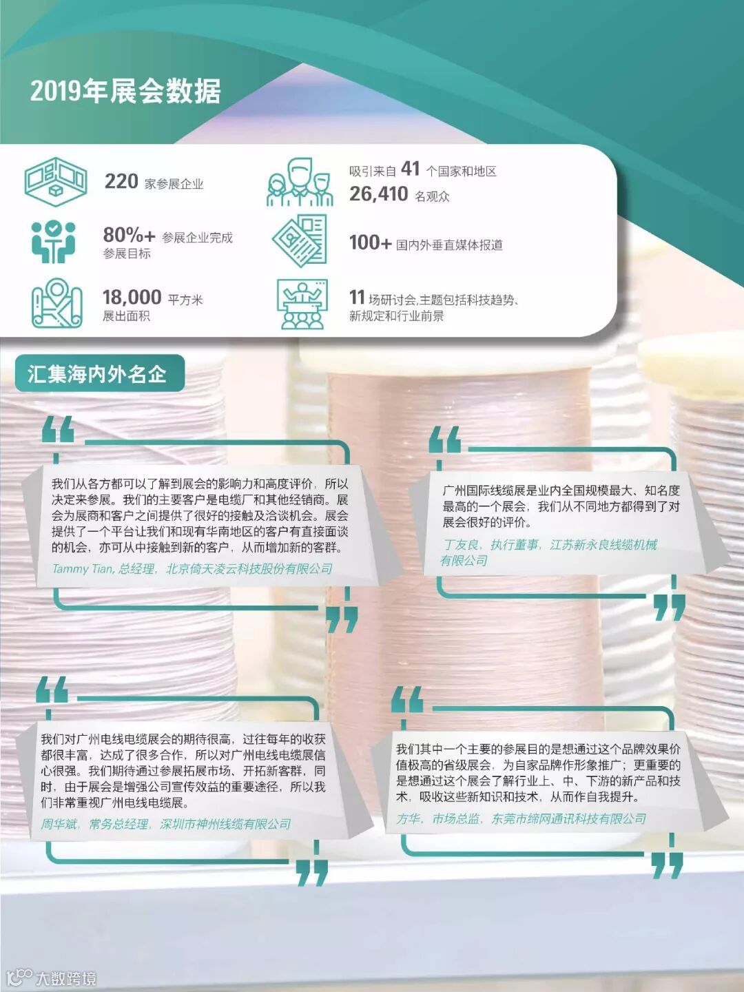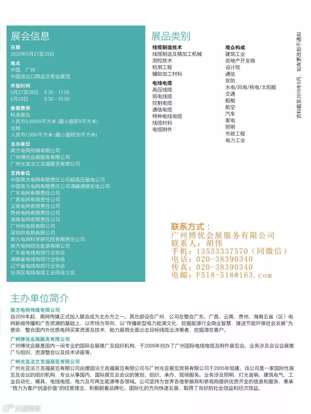 致力分享中国电线电缆行业最新资讯平台! 全球优质电线电缆产品一站式采购平台---2024亚洲电线电缆工业展览会 时间:6月26-28日 地点:广州.中国进出口商品交易会琶洲展馆 胡伟13533337570