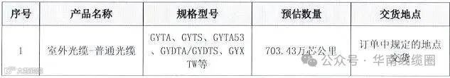 其中,普通光缆的基础采购规模约为23.94万皮长公里(折合703.43万芯公里),扩展部分采购规模为4.79万皮长公里(折合140.68万芯公里),扩展后的总采购规模为28.73万皮长公里(折合844.11万芯公里)。