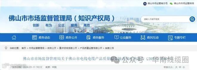 近日,佛山市市场监督管理局根据《中华人民共和国产品质量法》《产品质量监督抽查管理暂行办法》《广东省产品质量监督条例》等相关规定,开展了2023年佛山市电线电缆产品质量监督抽查,抽样、检验技术服务工作由佛山市质量计量监督检测中心承担。