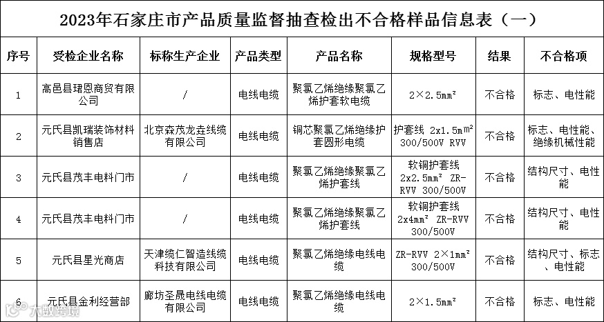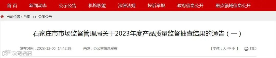 近日,石家庄市市场监督管理局发布关于2023年度产品质量监督抽查结果的通告(一)。