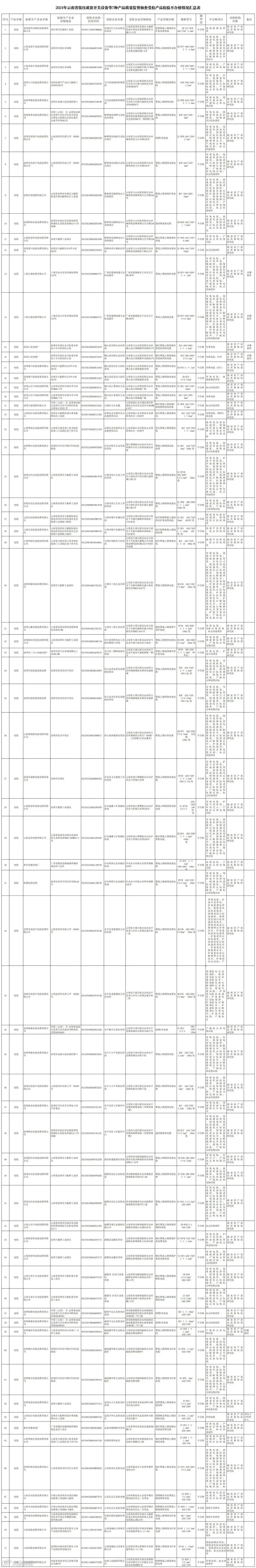 2024年,云南省市场监督管理局在全省范围内对低压成套开关设备、电线、灯具、按摩器具、电磁灶、饮水机和插头插座等7种产品开展质量监督抽查。