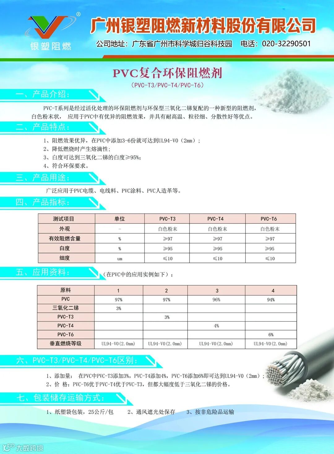 4、特别适用于PVC中替代三氧化二锑的阻燃。