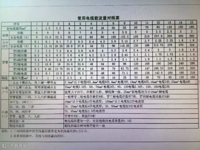 现在再和口诀对照就更清楚了,口诀“10下五”是指截面在10以下,载流量都是截面数值的五倍。