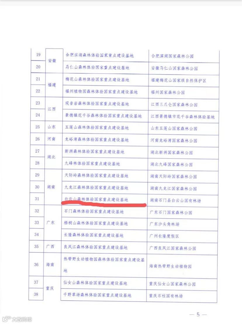 来自国家林业和草原局森林旅游工作领导小组办公室和国家林业和草原局森林旅游管理办公室的好消息:白云山国有林场入选“森林体验国家重点建设基地”,也是湖南成功入选两个重点建设基地的5家单位之一。