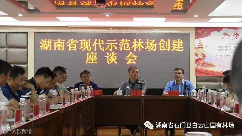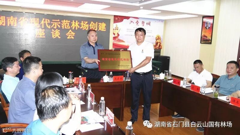 随后,与会人员就全省现代示范林场创建工作进行了座谈。会上,省、市林业部门负责人就相关工作情况进行了介绍,省林业局巡视员吴彦承为白云山国有林场授予“湖南省现代示范林场”牌匾,林场负责人分享了创建现代示范林场相关经验。