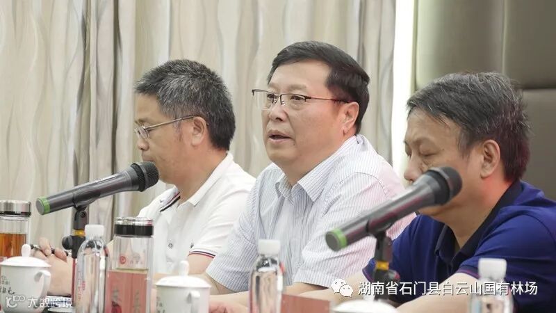湖南省林业局巡视员吴彦承、省国有林和森林公园管理局局长欧阳叙回、省国有林和森林公园管理局副局长蔡兵、省国有林和森林公园管理局副调研员吴锋、省农林工业勘察设计研究总院副院长王福生、省国有林场协会常务副会长左光辉、省国有林场协会功能型党支部书记冯科、省国有林场协会秘书长边更战、常德市林业局副局长颜劲草、石门县政府副县长谭本军等领导出席。