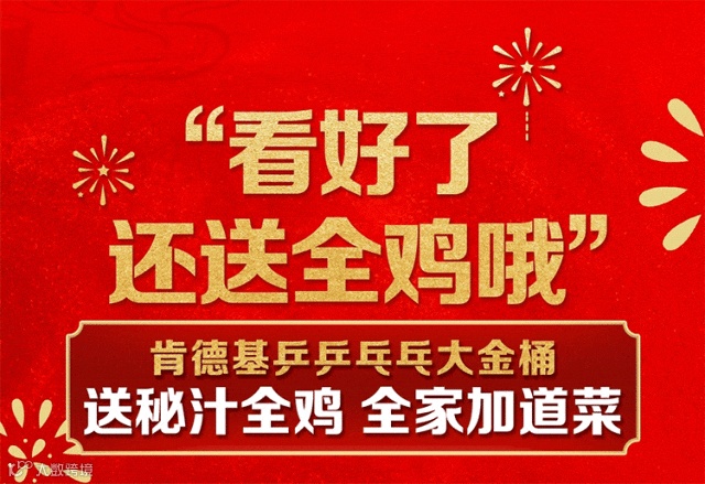 肯德基乒乒乓乓大金桶(鸡堡版)和肯德基乒乒乓乓大金桶(牛堡版)活动自2025年1月10日至2025年2月12日。肯德基乒乒乓乓大金桶(鸡堡版)含原味鸡汉堡1个。原味鸡汉堡自2025年1月6日至2025年1月27日上市,供应时间:9:30-20:00,共限量700万,售完即止。在不供应原味鸡汉堡的餐厅或时段,产品将替换为香辣鸡腿堡1个。“买金桶送全鸡”指活动期间,选购指定肯德基乒乒乓乓大金桶1份,即可随餐得秘汁全鸡1份或“秘汁全鸡1份”兑换券1张(登录肯德基WOW会员可享)。兑换券将在会员购买指定产品后的48小时内发放,会员可前往“我的卡包”查看。兑换券自发放至卡包起5小时后生效,生效后14天内使用有效,仅限使用1次。电子券的具体使用规则详见“我的卡包”券说明。活动渠道:堂食-自助点餐到店自取、外送-肯德基超级APP外送到家、外送-肯德基+微信小程序、外送-肯德基支付宝小程序。预约单不参加此活动。活动时间:9:30-23:00。活动地区:全国。如遇秘汁全鸡售罄,产品将替换为四味小食拼盘1份。堂食具体供应时间以餐厅实际营业时间为准,仅限有此产品供应的部分肯德基餐厅,交通枢纽、旅游景区、西藏自治区的餐厅及精选餐厅等部分餐厅除外,具体情况以餐厅餐牌公示为准;外送部分送餐区域不供应此产品,详情以输入地址后显示的菜单及送餐时间为准。外送费及打包服务费需自理。除推广产品外,其他物品仅做装饰目的,图示内容仅供参考。产品、周边、玩具及包装以实物为准。不与其他优惠共享。堂食、肯德基宅急送自有渠道、第三方外卖平台外送渠道、甜品站、团购渠道、企业送渠道及其他渠道的产品组合、价格及优惠活动,以各渠道页面公示为准。爆珠红石榴风味派自2025年1月10日起上市,共限量800万,售完即止。一闪一闪薯星星自2025年1月10日起上市,共限量600万,售完即止。上述两款产品任一售罄,爆珠红石榴风味派2个和一闪一闪薯星星1份将统一替换为红豆派2个和薯条(大)1份。如遇其他桶内产品售罄或断货,相应金桶版本随即结束售卖。肯德基乒乒乓乓大金桶包装自2025年1月10日起供应,包装全国数量为300万套,数量有限,发完即止。海南地区不供应定制桶包装,具体包装以实物为准。