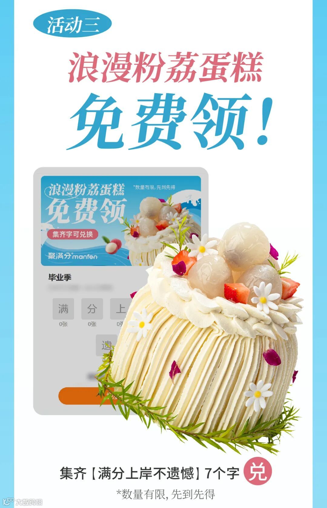 1、上述留言活动【浪漫粉荔蛋糕】将于2025年6月28日前发放奖品,需要在中奖留言回复【会员号(13位数)】,推文内奖品以卡券形式发放至卡包,以上图片仅供参考,具体以实物为准,本活动最终解释权归聚满分所有。
