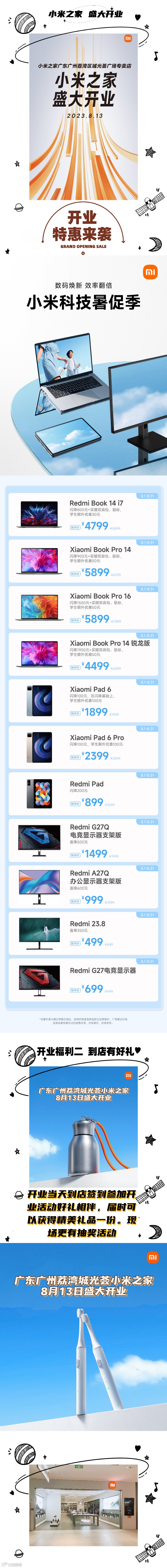 【小米】城光荟荔湾店8月13日本周日喜迎新店开业,开业好礼等你来领!