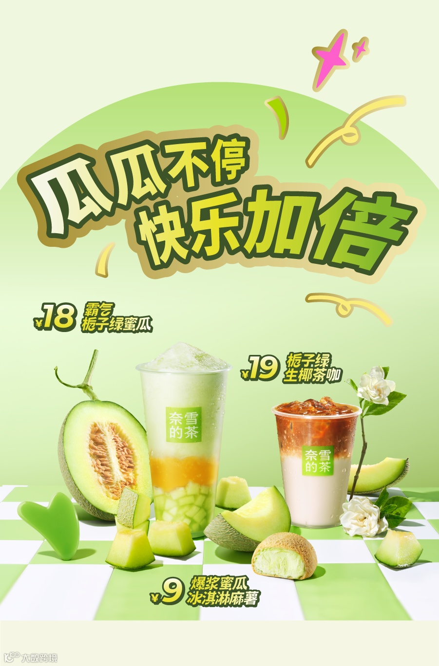喝栀子绿蜜瓜,刮好运,1杯变3杯!