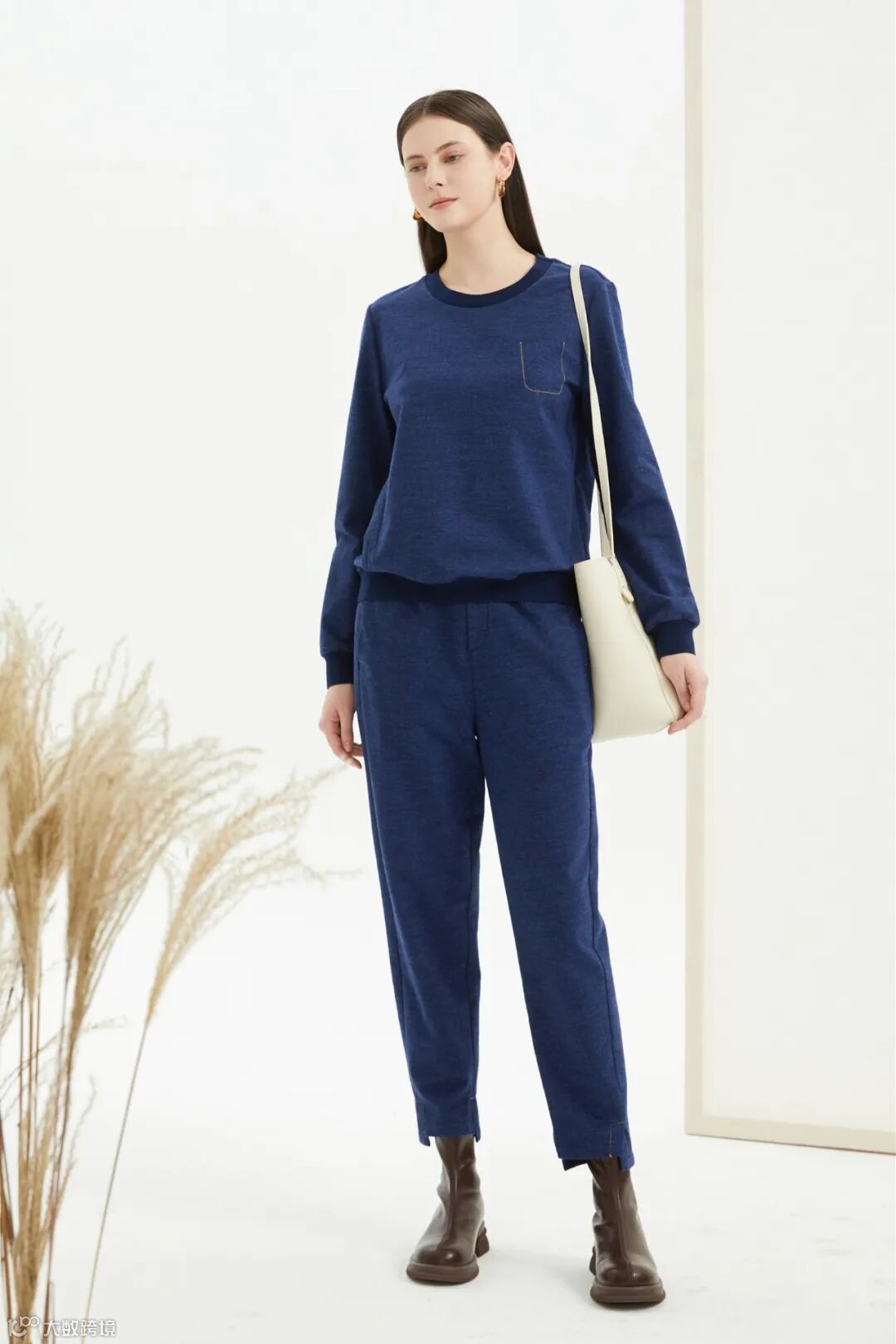 牛仔蓝套装,运动感十足,造型清新干练,亲肤环保面料,自由地漫步当下,感知身边具象的生活,与“附近”建立真实的链接。