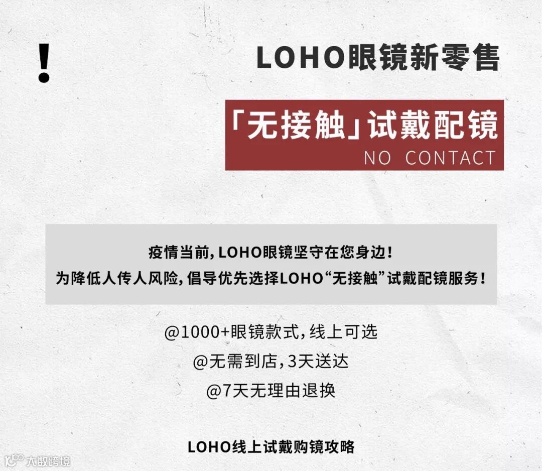 LOHO推出一系列「无接触」举措,是将“人”的安全放在首位。也让每一位消费者直接在线上挑选1000+款式,购镜的同时更增添一分安心,同时也保护好门店伙伴的安全。