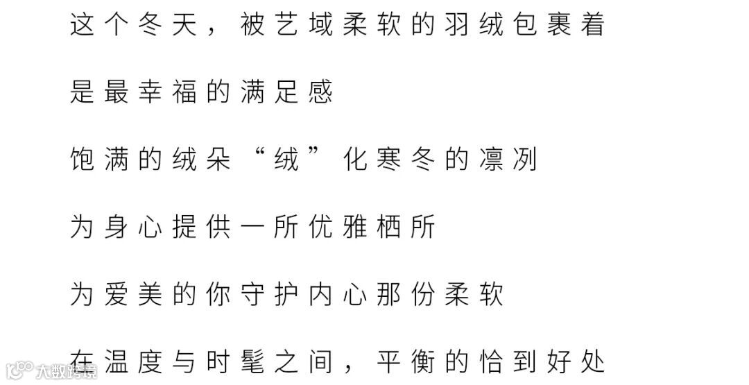 导读:这个冬天,被艺域柔软的羽绒包裹着,为身心提供一所优雅栖所,为爱美的你守护内心那份柔软......